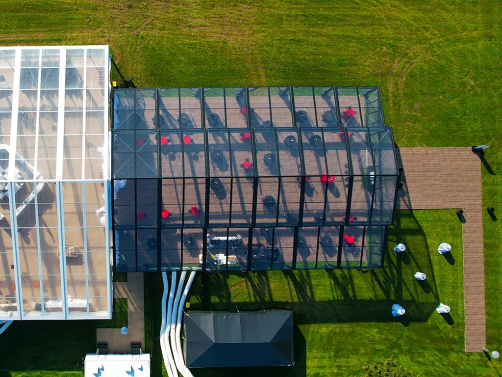 For example, if you wanted to order a 100’ x 200’ structure tent for rental, we would quote you a 30 meter x 60 meter clearspan structure available with solid vinyl tops or clear vinyl tops and sidewalls in the following options: solid white vinyl, clear vinyl, window wall vinyl, hard walls (insulated and non-insulated), glass walls, or mesh screen walls. If it turns out your event is going to be a little larger than you originally thought, we can expand the length by the previously mentioned 5 meter increments up to a 65 meter or 70 meter long tent! Looking for something not listed? Ask your sales representative! We have completed a variety of custom tent and sidewall orders catered just to our customers’ needs!