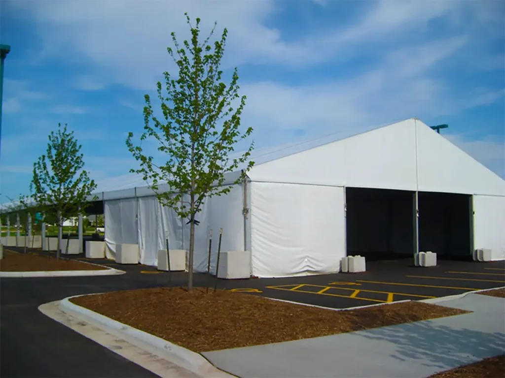 Vinyl sidewalls provide a flexible enclosure that can be deployed, rolled, or removed based on changing weather and operational needs. With multiple colors, patterns, and visibility levels, they help you manage wind, rain, and sun while still allowing you to open the sides when conditions improve. We help you choose where continuous sidewall coverage is critical and where you may want the flexibility to roll or remove panels.