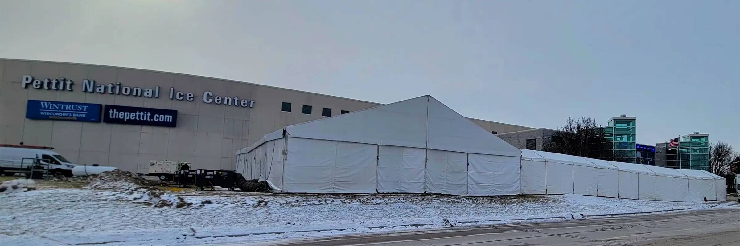 The Pettit National Ice Center in Milwaukee hosts major long-track speed skating events requiring controlled entry systems and reliable winter performance. JK Rentals delivers snow-protected, climate-managed entry structures that preserve interior conditions and support efficient check-in during high-attendance competitions.