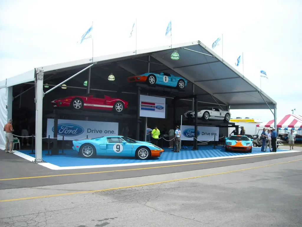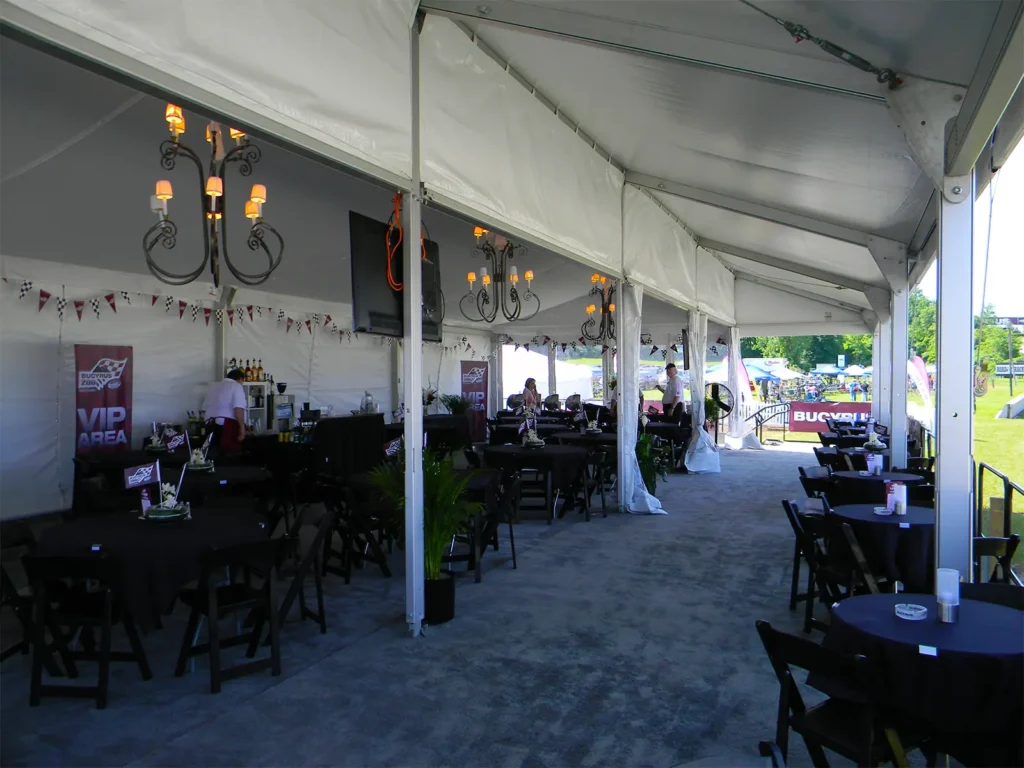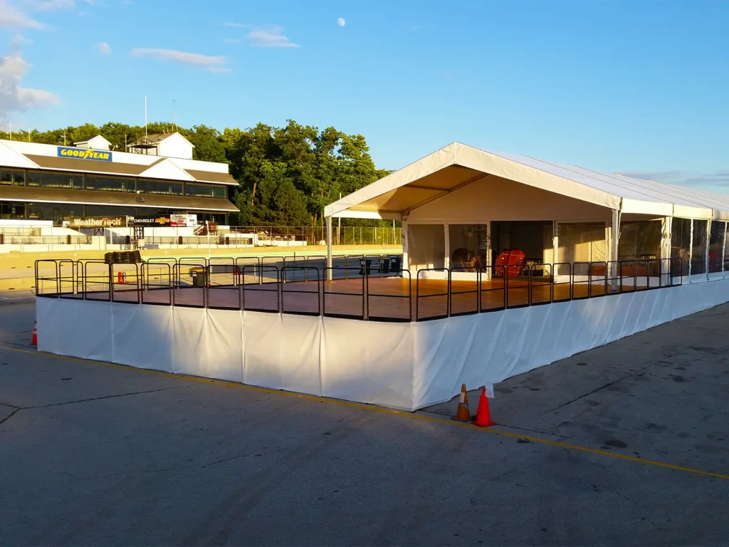 Road America requires solutions for multiple audiences simultaneously. Tent types are selected based on vendor or team size, access, and duration needs.