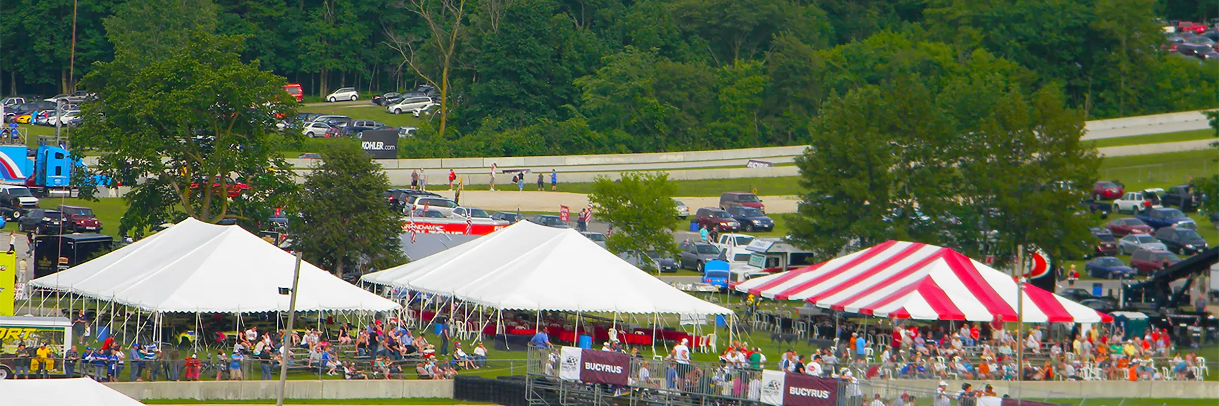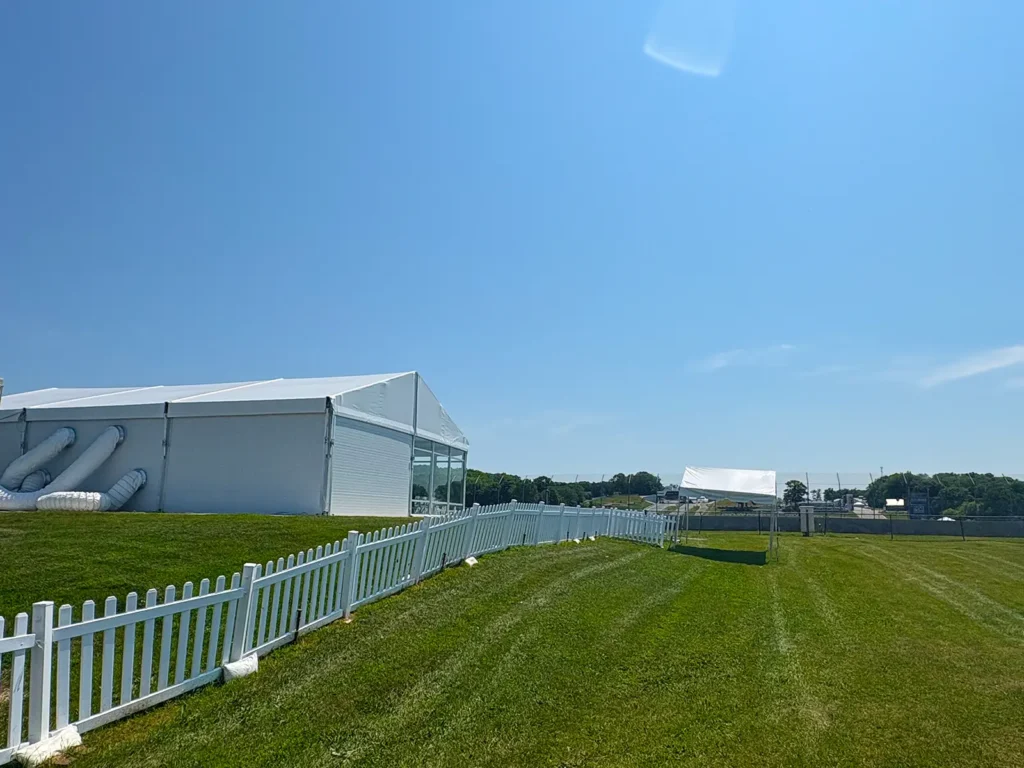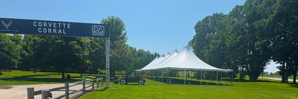 JK Rentals provides ongoing structural support across the Road America campus, supplying frame tents, pole tents, and clearspan structures tailored to event scale and operational needs.