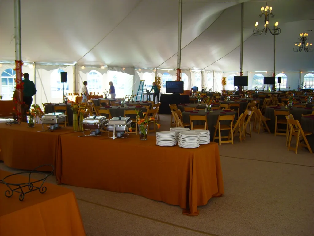 Pole tents are generally best suited for open ground where staking is permitted. If your site has mostly hard surfaces or staking restrictions, a frame tent or another solution may be more appropriate based on anchoring needs. While tension tents can sometimes be installed on pavement, this typically requires drilling into the surface. Every site is unique, so our team will help determine the best option for your event.