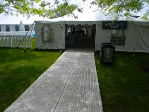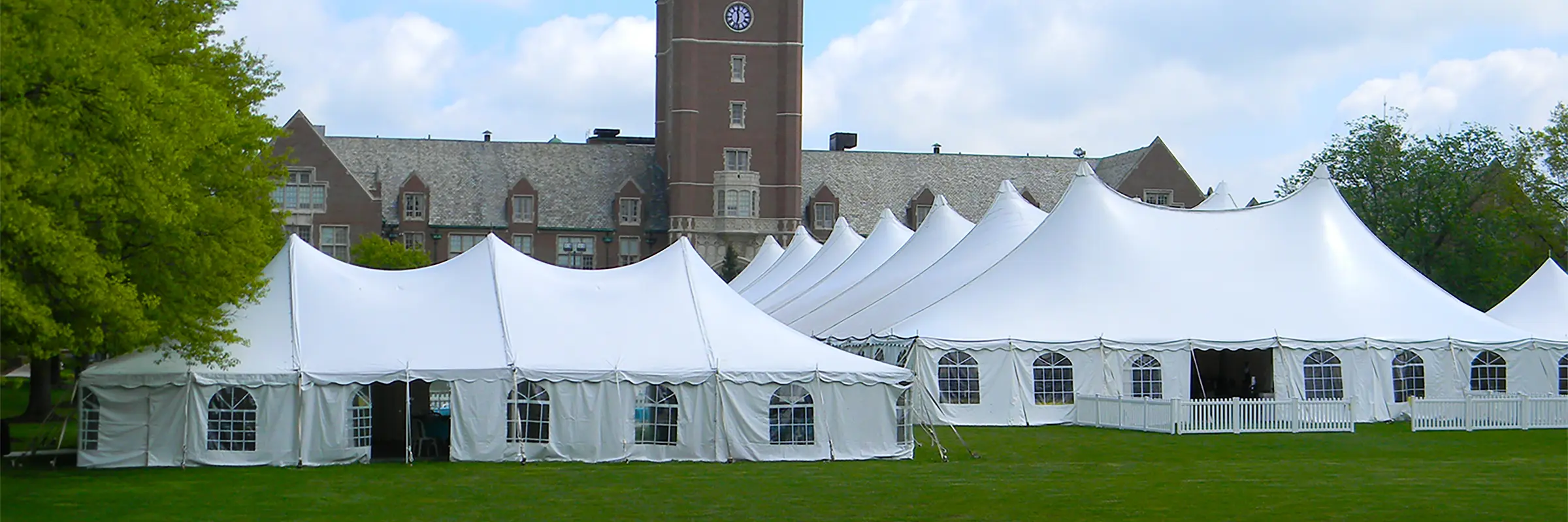 Pole tents are generally best suited for open ground where staking is permitted. If your site has mostly hard surfaces or staking restrictions, a frame tent or another solution may be more appropriate based on anchoring needs. While tension tents can sometimes be installed on pavement, this typically requires drilling into the surface. Every site is unique, so our team will help determine the best option for your event.